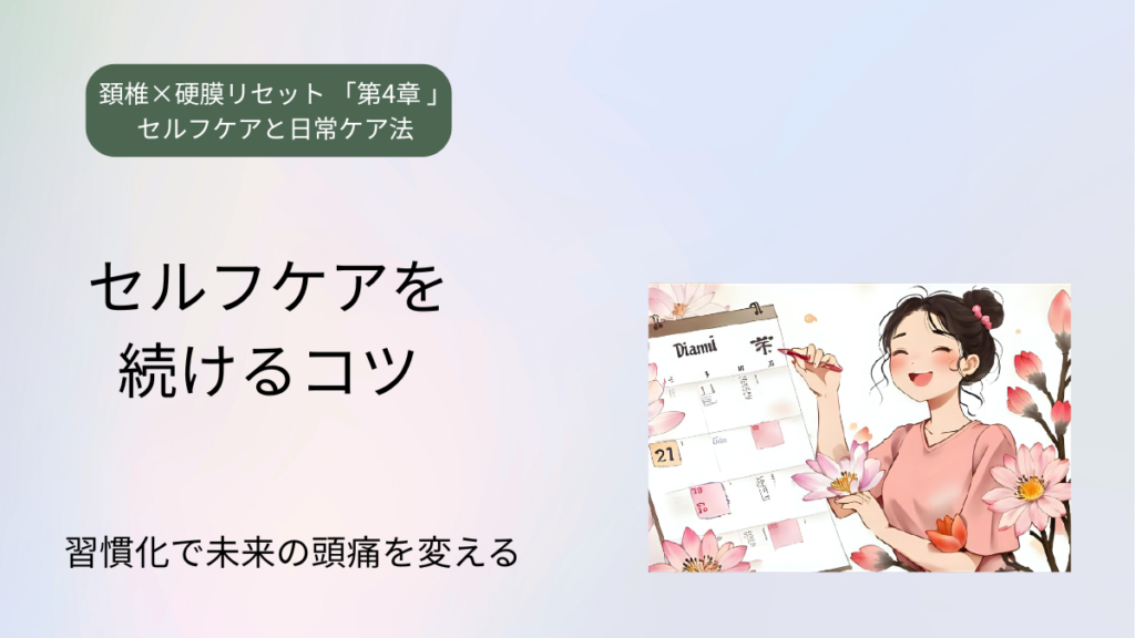 続けるほど、体と心は軽くなる セルフケアを始めたときの高揚感は、数日たつと不思議と薄れていきます。忙しさに流され、気づけば「また明日でいいか」と先延ばし。そんな自分を責める必要はありません。続けられないのは意思が弱いからではなく、私たちの...