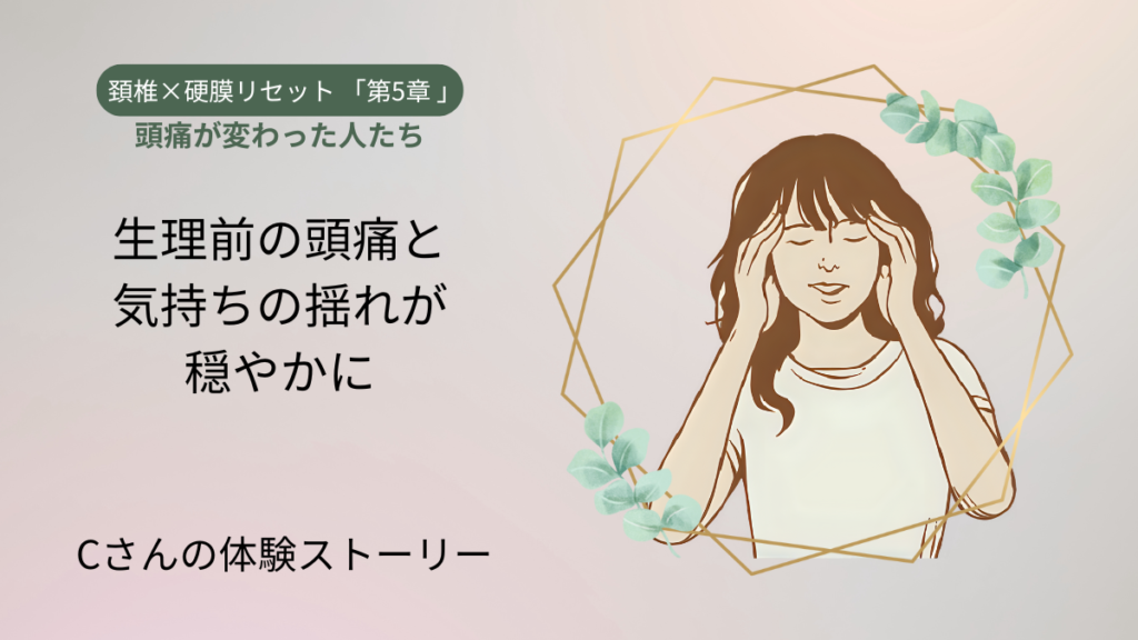 第5章では、実際に頭痛が変化した方々の体験談をご紹介しています。今回は「生理前になると頭痛と気持ちの揺れに悩まされていた」Cさんのお話です。施術を通じて体と心がどのように落ち着きを取り戻していったのか――私自身も強く印象に残ったケースです。 ...