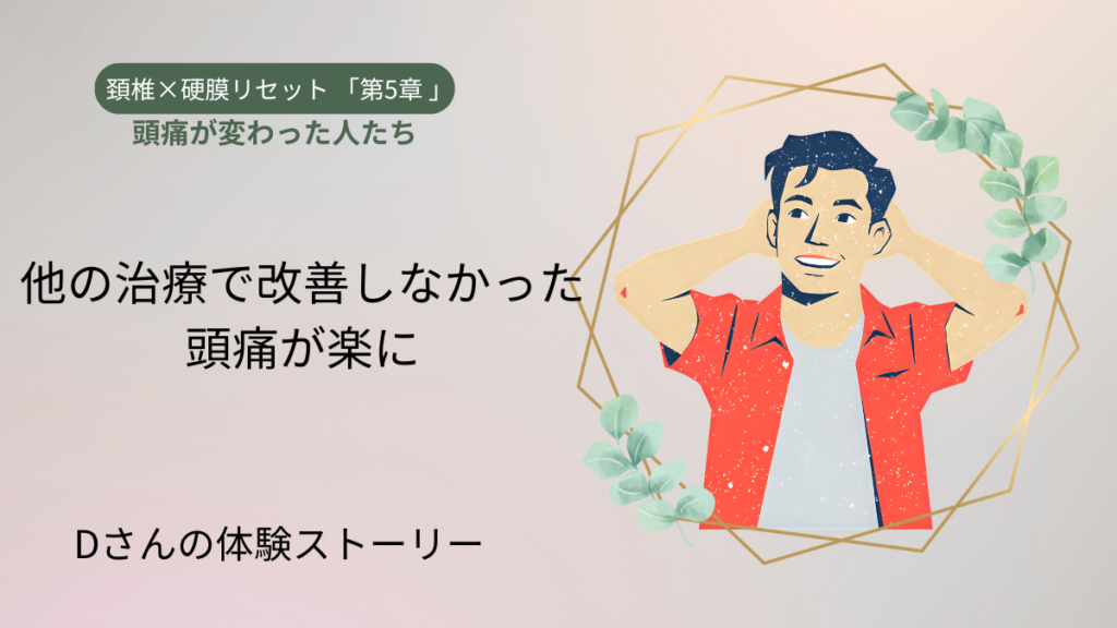 【【第5章】頭痛が変わった人たち】 ここまで「頚椎×硬膜リセット」について、理論や仕組みを中心にお伝えしてきました。第5章では少し趣向を変えて、実際に頭痛が変わった方々の体験談をご紹介していきます。 どんなに理論を知っても、「本当に効くの?」...