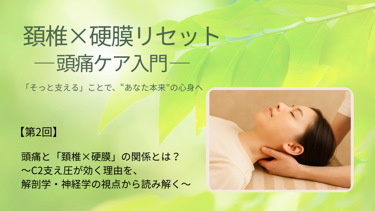 今回は特に重要な頚椎2番(C2)と硬膜の関係に注目し、『なぜ頭痛に効くのか』を解剖学・神経学の視点から解説します。