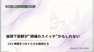 首の奥——特に後頭下筋群(こうとうかきんぐん)と呼ばれる小さな筋肉たちが、頭痛や自律神経の乱れに深く関わっているのです。